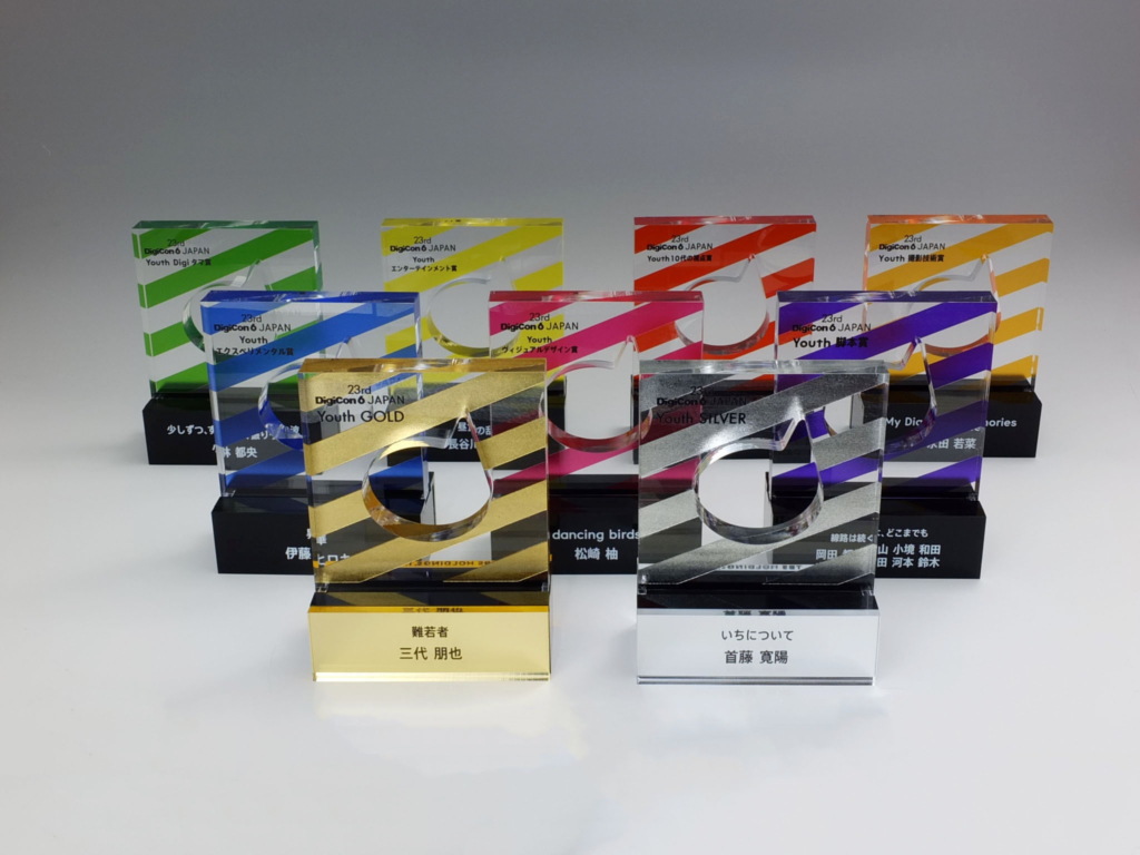 クリスタルガラス記念品メイクワンの特注製作実例:日本グラフィックデザイン協会(JAGDA)様 新人賞トロフィー クリスタルガラス記念品メイクワンの特注製作実例:日本グラフィックデザイン協会(JAGDA)様 新人賞トロフィー クリスタルガラス記念品メイクワンの特注製作実例:日本グラフィックデザイン協会(JAGDA)様 新人賞トロフィー