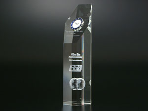 時計+2D彫刻の表彰盾(クリスタルガラス)