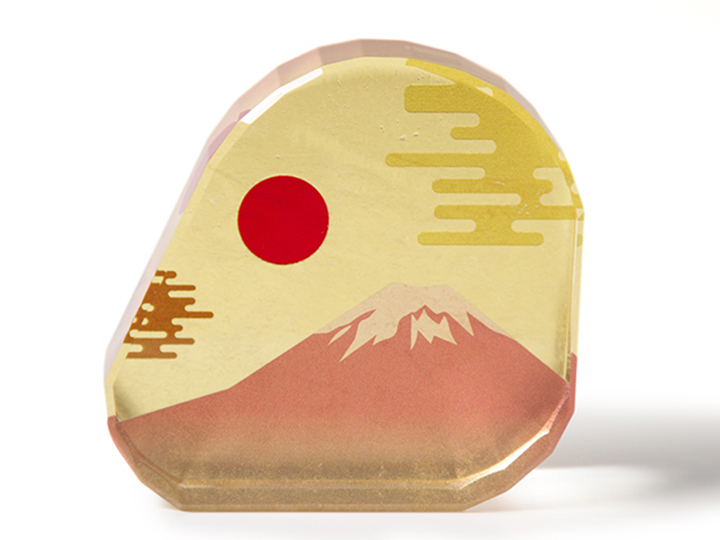 「和」がコンセプトのクリスタル・ペーパーウェイトです。 ガラス内部に富士山の3D彫刻、背面には金箔(金94%、銀6%)が施された日本の文化が楽しめる記念品です。 富士山の向こう側に太陽が見える事にこだわり、宝... 続きを読む